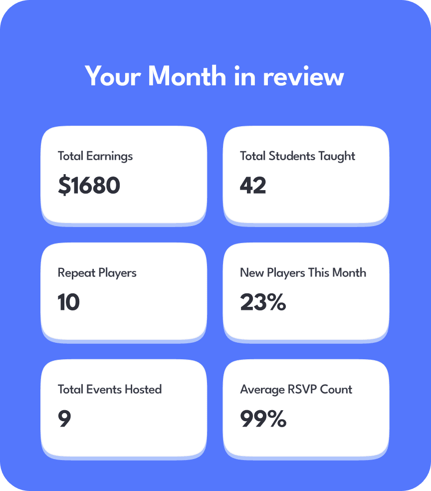 Boost attendance with QR code event sharing, simple sign-ups, and tools designed to help you expand your teaching reach.